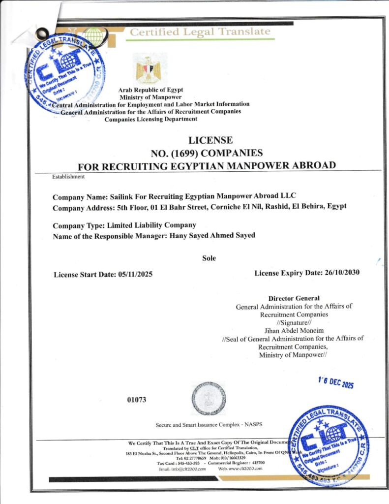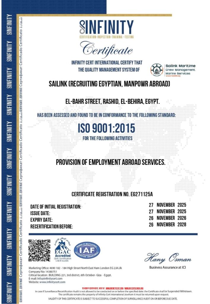 Sailink provides quality crew to meet today’s and tomorrow’s maritime needs. We are well-positioned to tap into this huge pool of well-educated and experienced seafarers in Egypt and Arabian Countries.